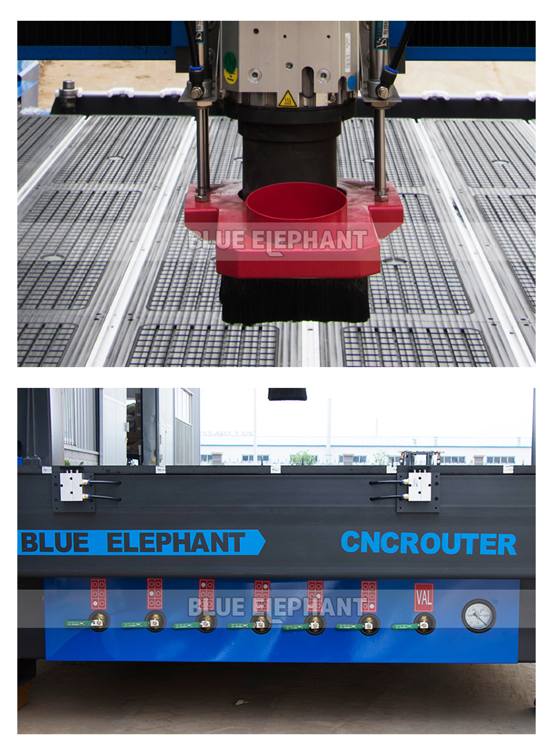 采用T型槽和真空工作台,共分为6个区域,提高使用率。