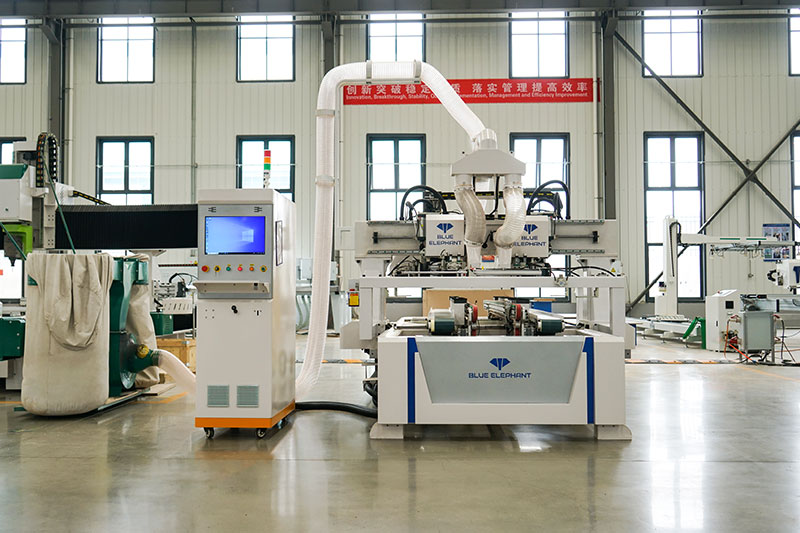 通过式四边锯主要应用于木门行业,一次定位即可完成木门的四面归方。通过式四边锯还可与生产优化软件对接,实现自动扫码、通过式输送带输送无人化流水线作业,有效提高生产效率。