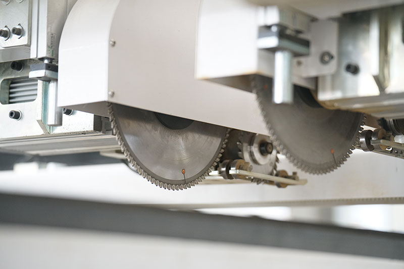 通过式四边锯边料收集空间大,边料通过输送带送离加工区。