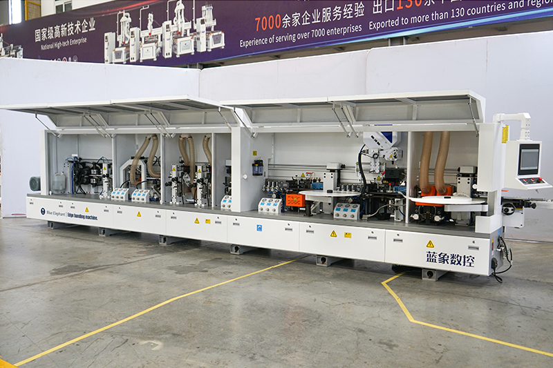 E-70JDS 全自动封边机可完成涂胶、压贴、齐头、粗修、精修、刮边、抛光等功能,其封边效果细腻、光滑、手感好,封线平直光滑。