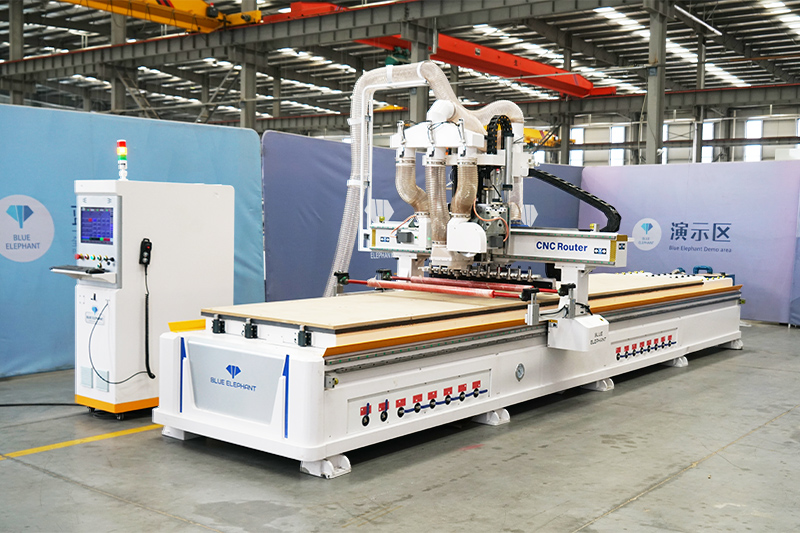 机器采用12把直排自动换刀,9kw风冷主轴搭配5.5kw锯片主轴,加工精度高,加工板材光滑整洁无毛刺。