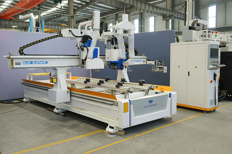 3、ATC风冷主轴搭配8刀转盘式换刀库,可实现门锁孔钻孔、雕刻、切割等加工;